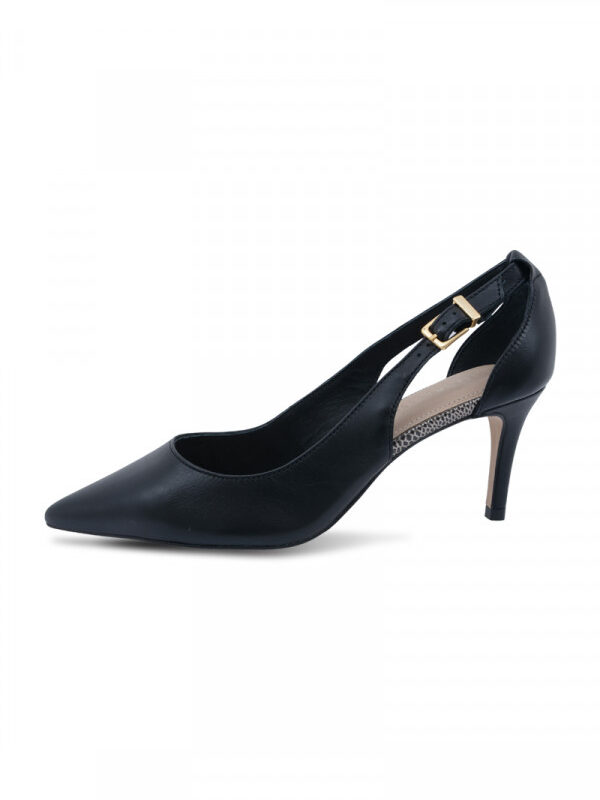 Opis: Kožne ženske cipele u crnoj boji sa geometrijskom zlatnom šnalomOdaberi opcije This product has multiple variants. The options may be chosen on the product page -
