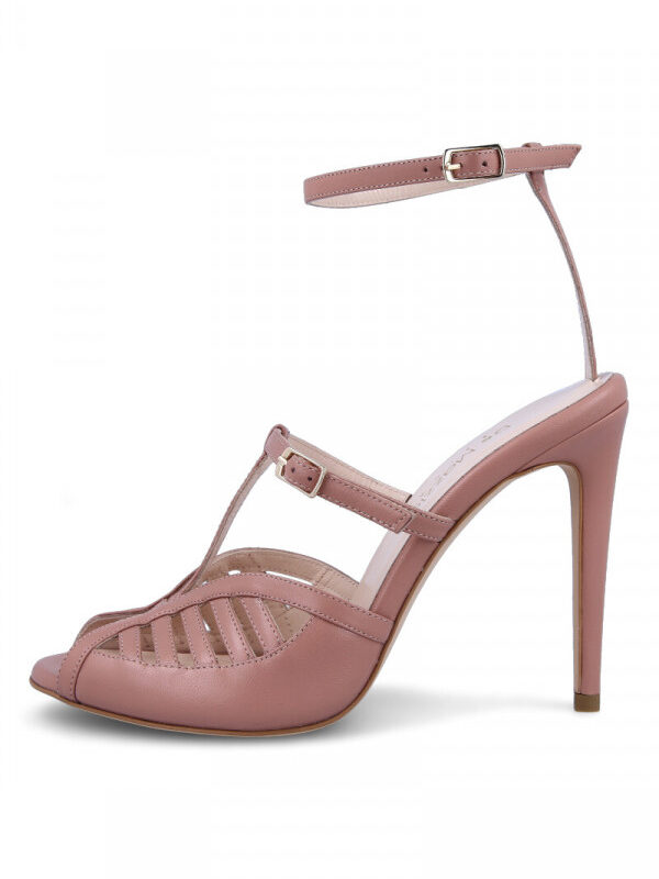 Opis: Ženske sandale u puder roza boji sa kaiševima i potpeticom visine 12 cm