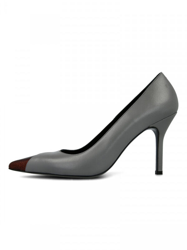 Opis: Kožne ženske cipele u sivoj boji sa potpeticom visine 9 cm