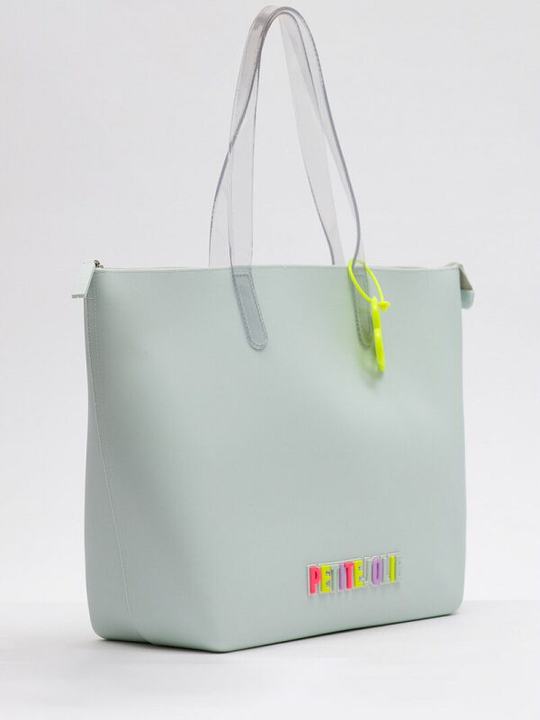 Sastav: Veštački materijalOpis: Gumena ženska torba u svetlo zelenoj boji sa logo znakom
