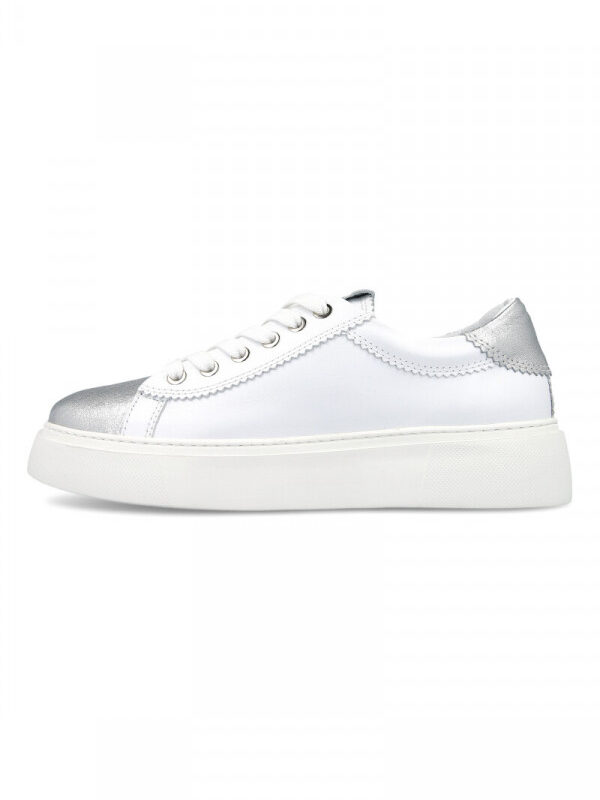 Opis: Kožne ženske plitke patike u beloj boji sa silver detaljima