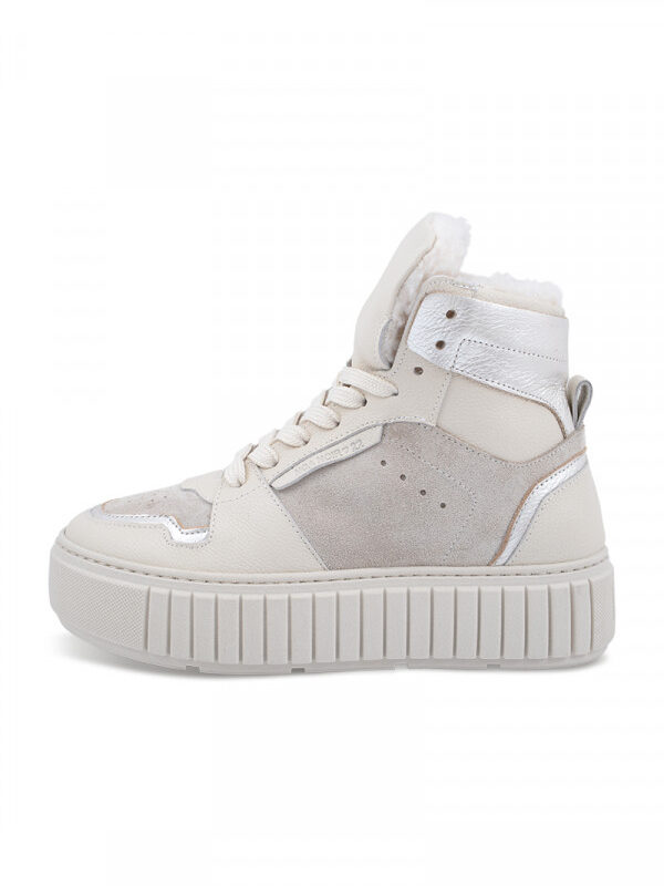 Opis: Kožne duboke ženske patike u bež boji sa detaljima u metalik sivoj boji, krznom i izdignutim đonomOdaberi opcije This product has multiple variants. The options may be chosen on the product page -