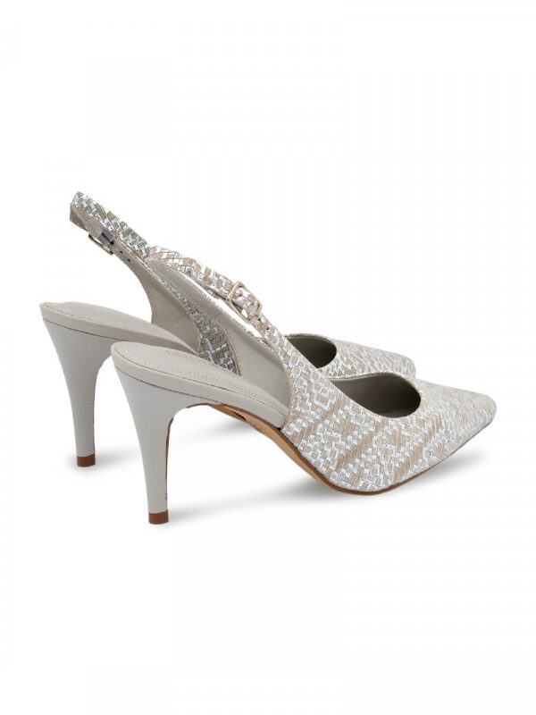 Opis: Kožne ženske sandale u puder boji sa metalik špicastim vrhom, otvorenom petom i visokom potpeticomOdaberi opcije This product has multiple variants. The options may be chosen on the product page -