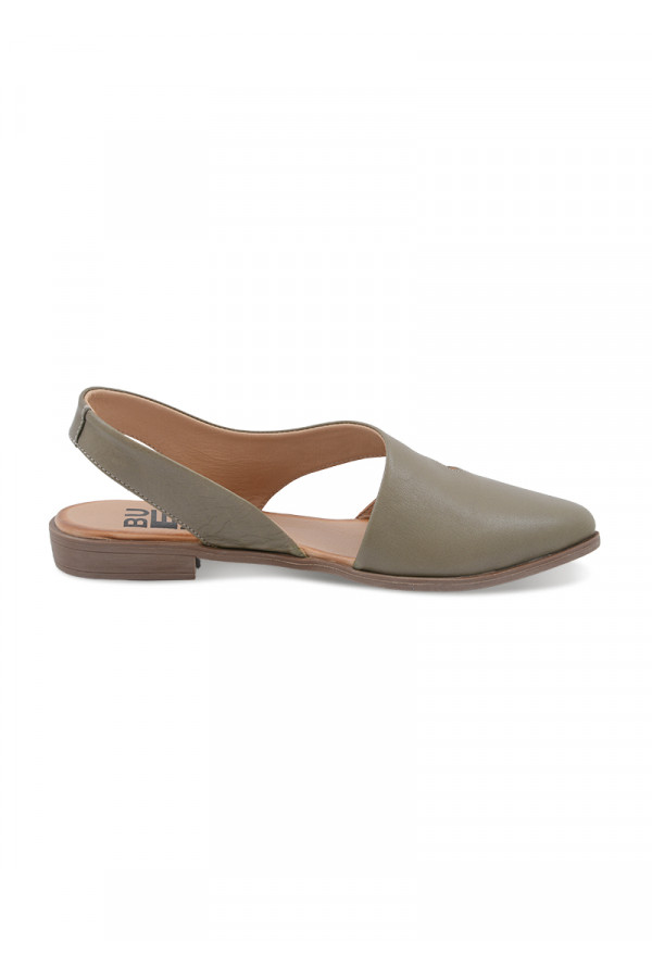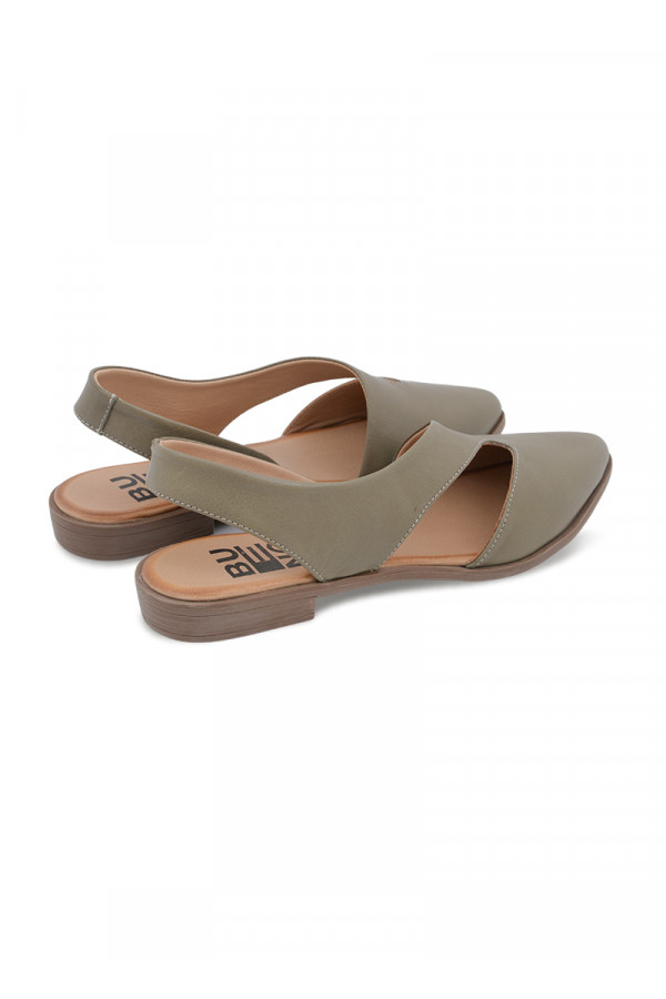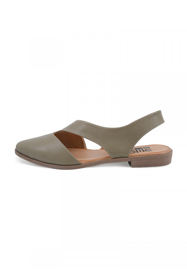 Opis: Kožne ženske ravne sandale u maslin azelenoj boji sa špicastim vrhom i otvorenom petom