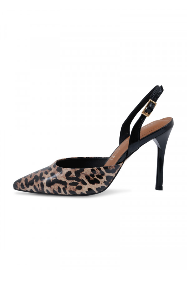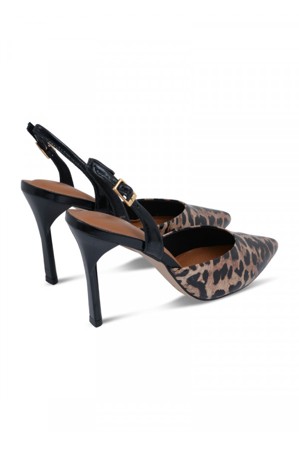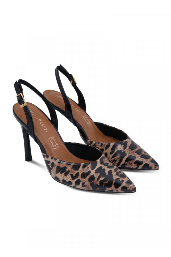 Opis: Ove upečatljive Capelli Rossi slingback salonke izdvajaju se smelim leopard printom koji im daje moderan i odvažan karakter. Izrađene su od prirodne kože vrhunskog kvaliteta, sa tankom potpeticom od 10 cm i podesivim crnim kaišem na peti koji osigurava stabilnost pri hodu. Unutrašnjost cipele sadrži mekane kožne jastučiće za dodatnu udobnost, što ovaj model čini efektnim izborom za večernje izlaske ili svečane prilike gde želite da ostavite snažan modni utisak.