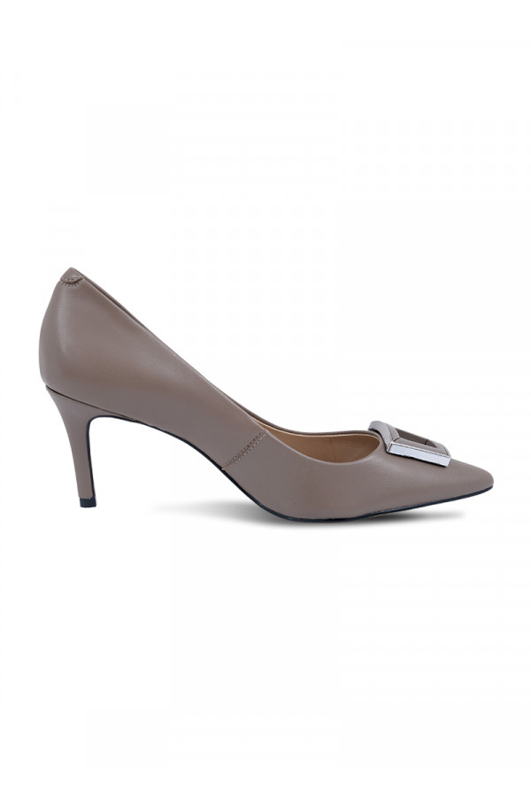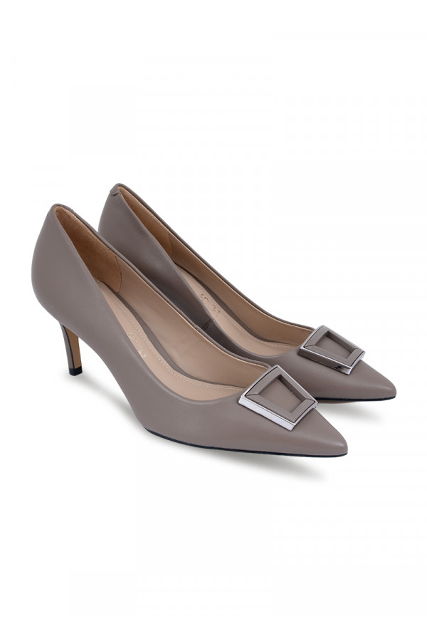 Opis: Kožne ženske cipele u puder boji sa srebrnim detaljima i visokom potpeticom