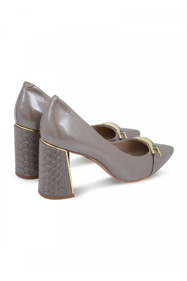 Opis: Kožne ženske u bež boji sa zlatnom šnalom i kroko potpeticom