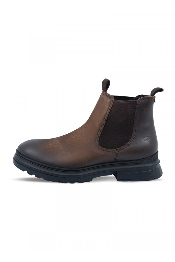 Opis: Kožne duboke muške cipele u braon boji sa bočnim lastiš trakama