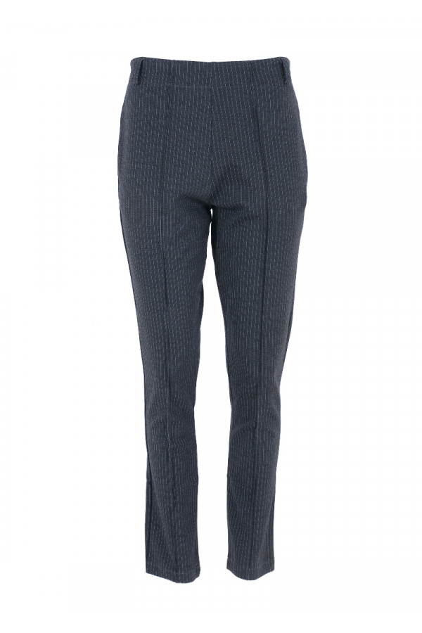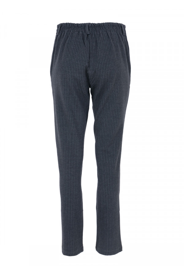 Opis: Ženske pantalone u tamno sivoj boji sa visokim strukom, lastiš pojasom i uskim nogavicama