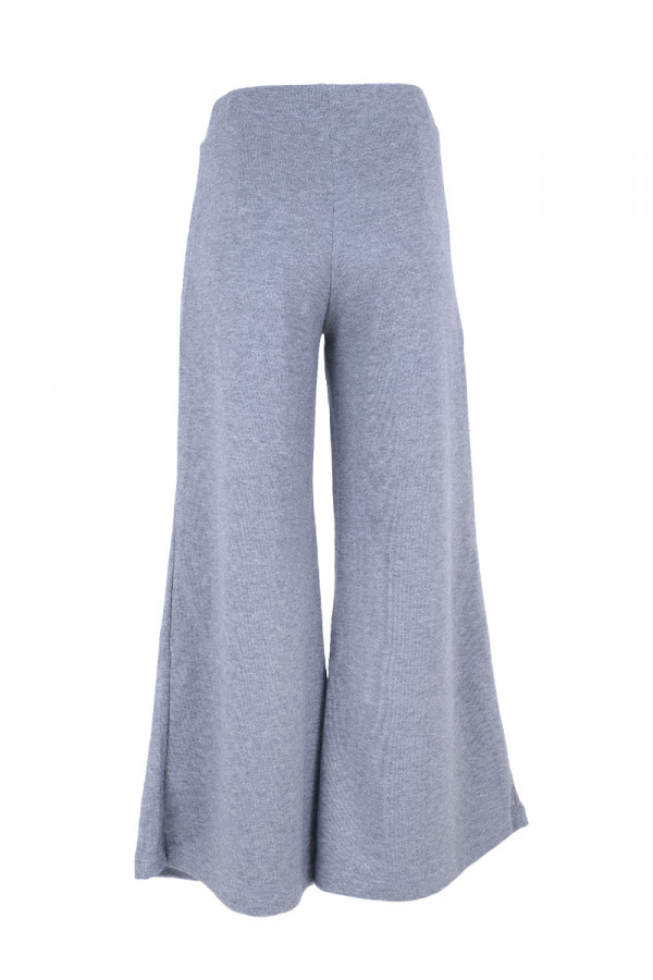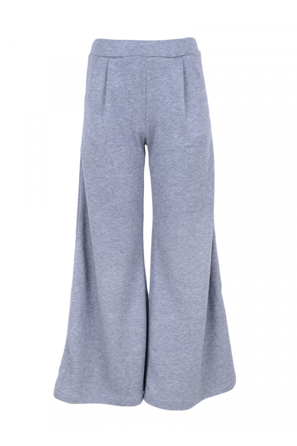 Opis: Ženske pantalone u svetlo sivoj boji sa visokim strukom, lastiš pojasom i širokim nogavicama