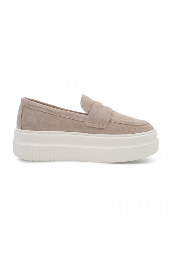 Opis: Kožne ženske ravne cipele u bež boji sa naglašenim đonom