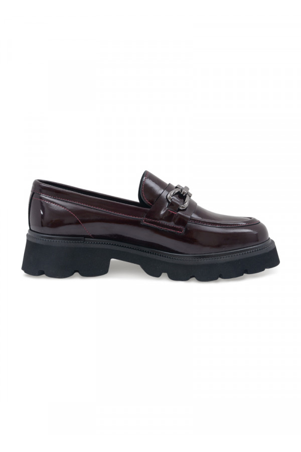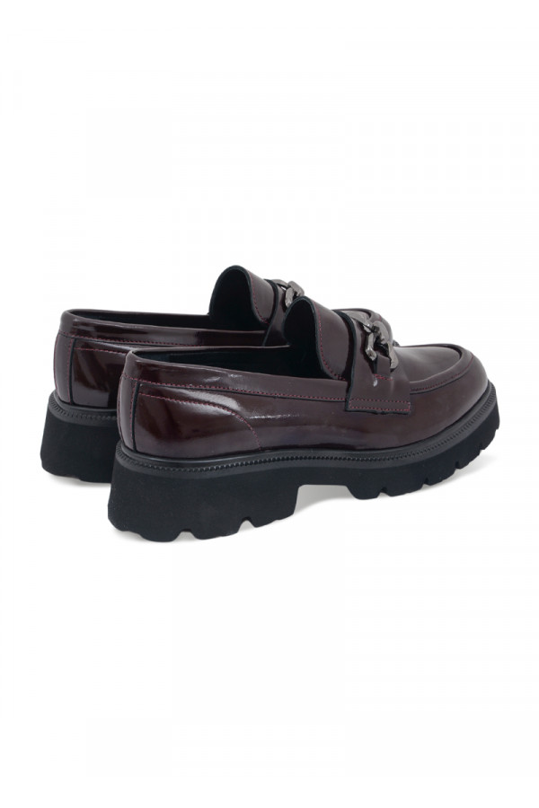 Opis: Kožne ženske ravne cipele u bordo boji sa alkama