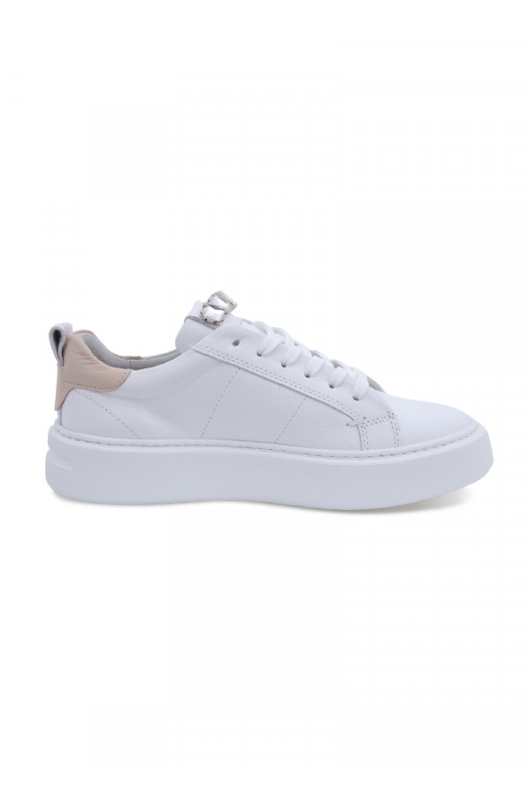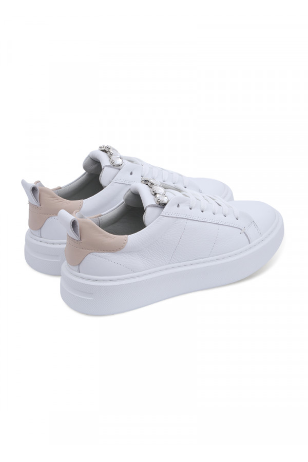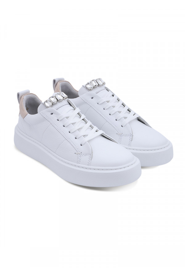 Opis: Kožne ženske patike u beloj boji sa ravnim đonom i ukrasnim kristalima