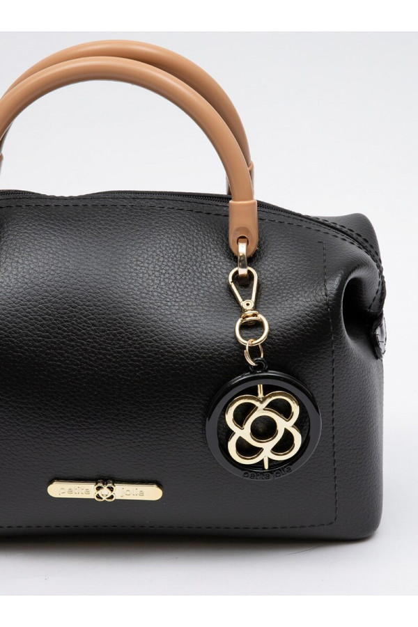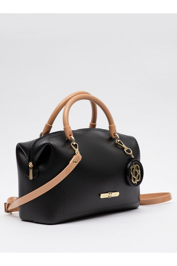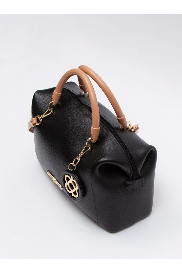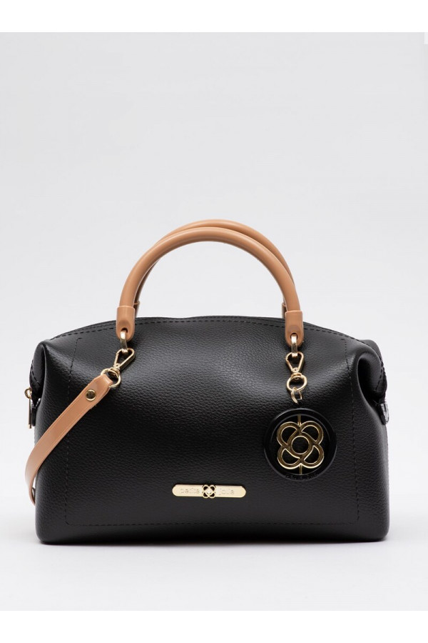 Opis: Gumena ženska torba u crnoj boji sa metalik zlatnim detaljima i logo znakom