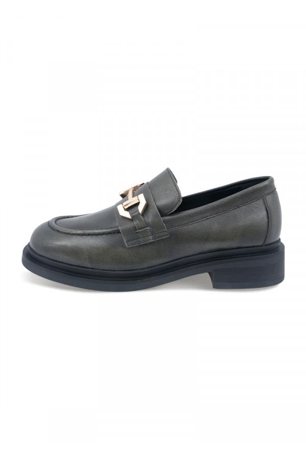 Opis: Kožne ženske ravne cipele u metalik zelenoj boji sa dekorativnom šnalom
