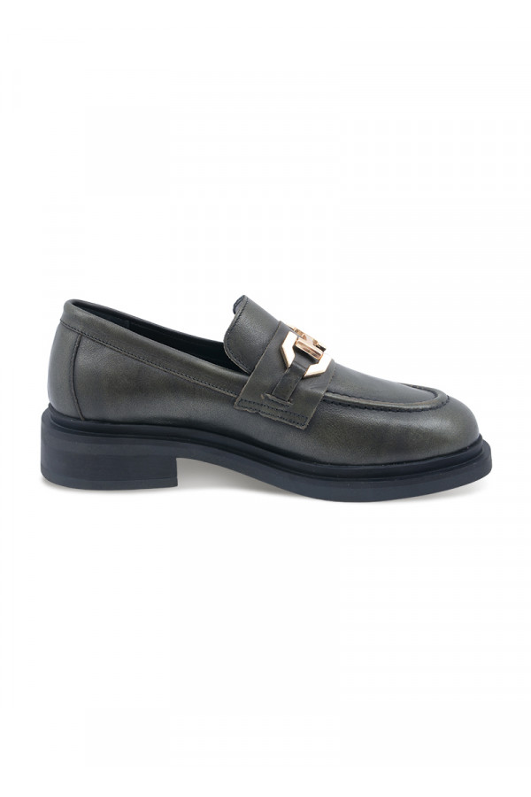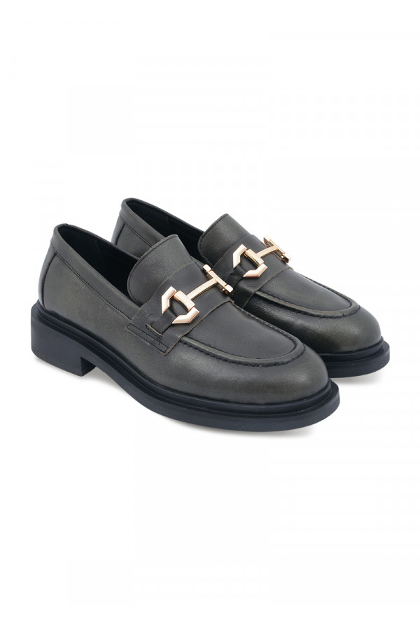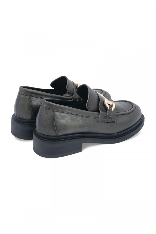 Opis: Kožne ženske ravne cipele u metalik zelenoj boji sa dekorativnom šnalom
