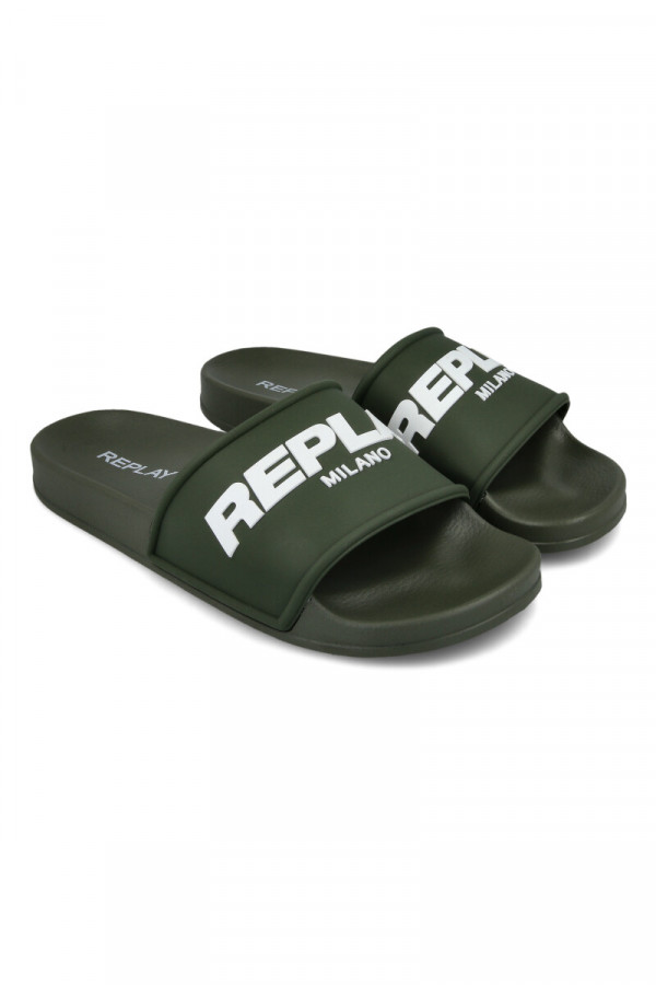 Opis: Muške papuče u military zelenoj boji sa logo printom