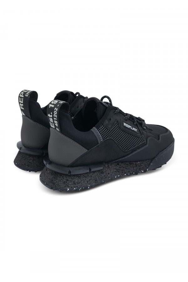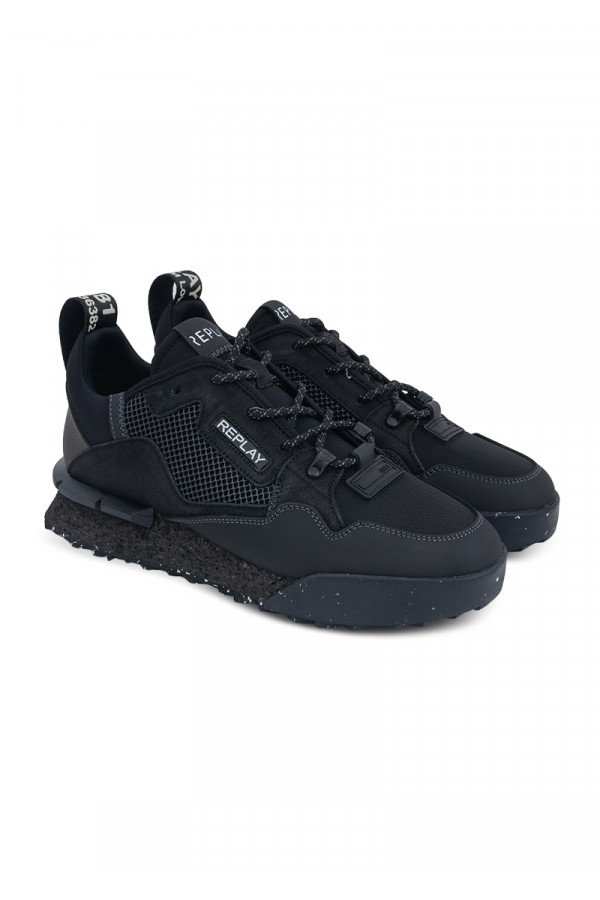 Opis: Kožne plitke muške patike u crnoj boji sa logotipom