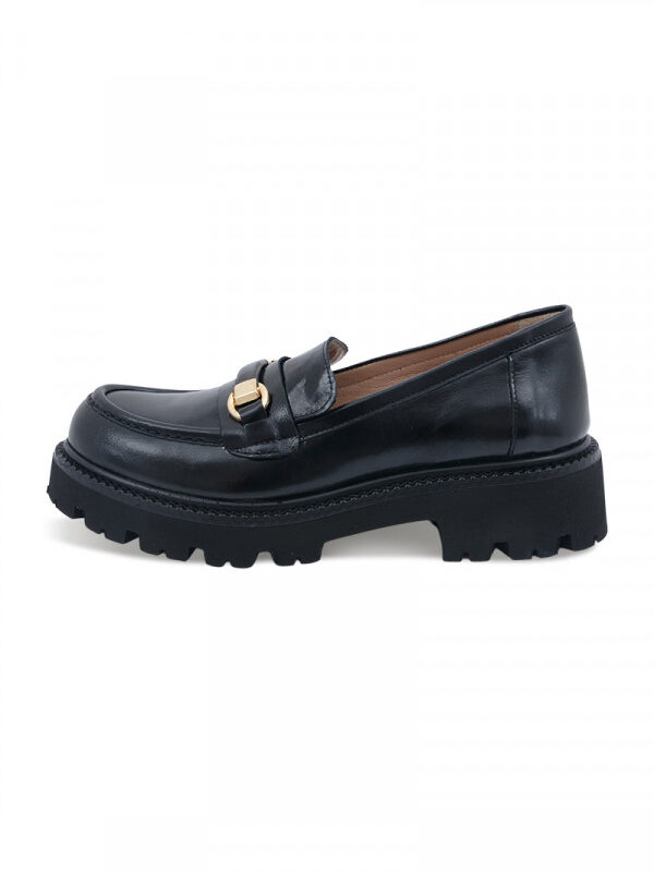 Opis: Kožne ženske ravne cipele u crnoj boji sa metalnom šnalom i naglašenim đonomOdaberi opcije This product has multiple variants. The options may be chosen on the product page -